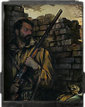 Ворон, на Свалке. Но он появится позже. И он теперь слева от ангара депо, там два контейнера стоят на рампе. Он возле костра будит сидеть и менять стволы на арты.